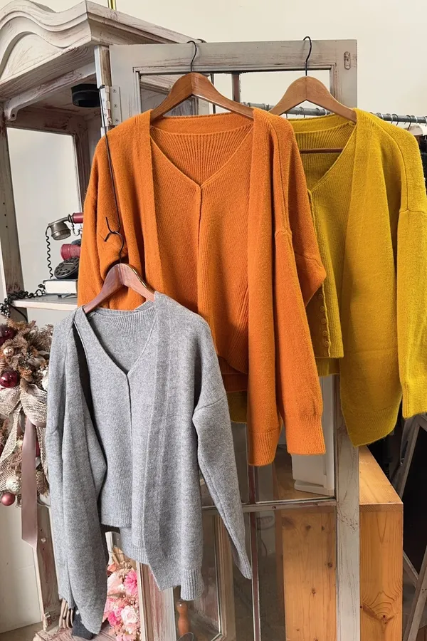 層次感V領針織背心+外套