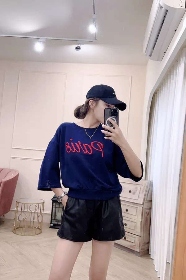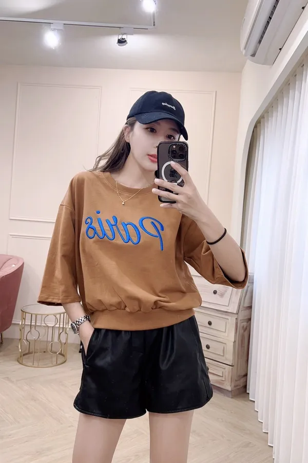 510書寫字母棉T五分袖上衣