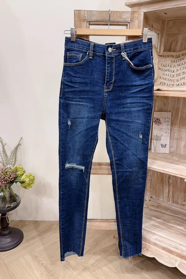 511刷破深色牛仔窄管褲