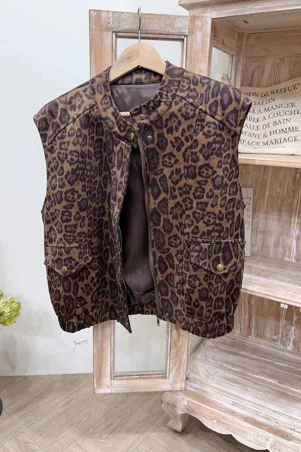 529麂皮豹紋下擺縮口背心