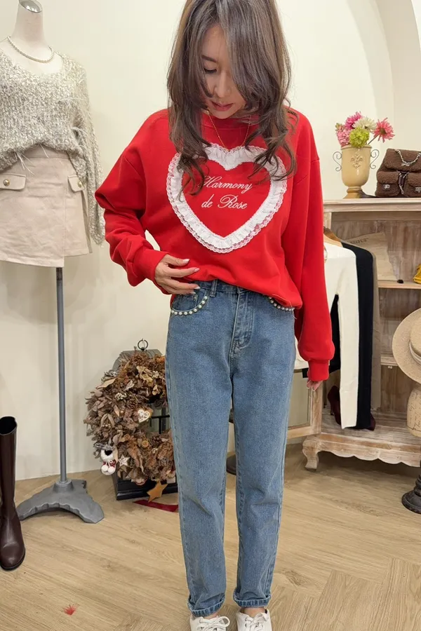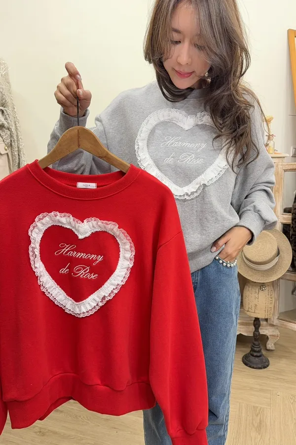 713蕾絲愛心棉質大學T上衣