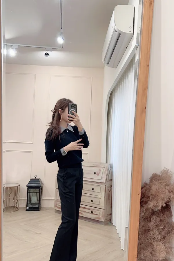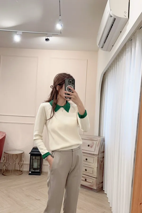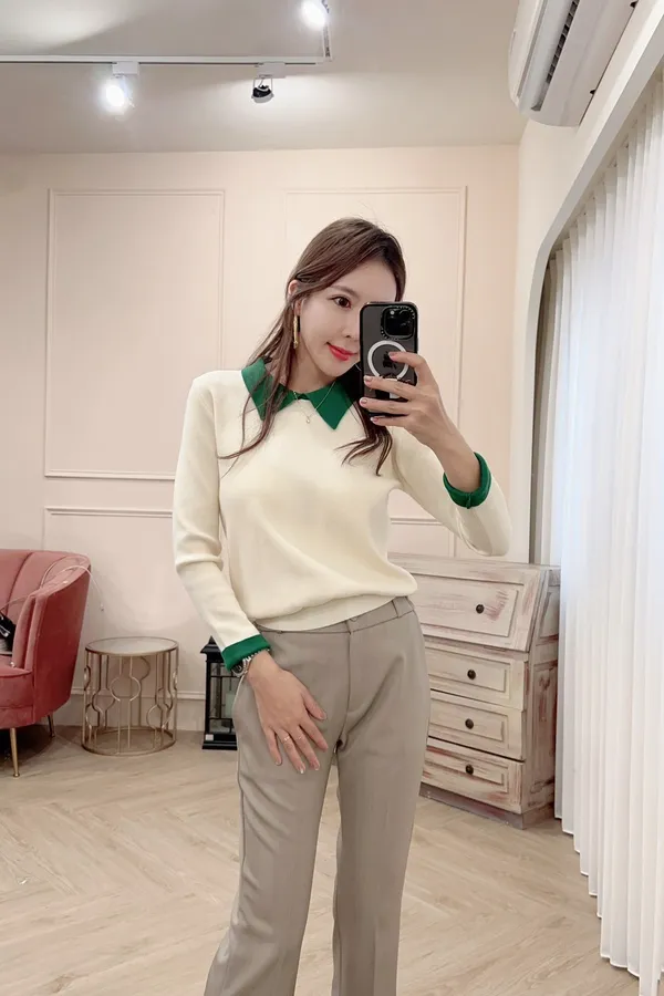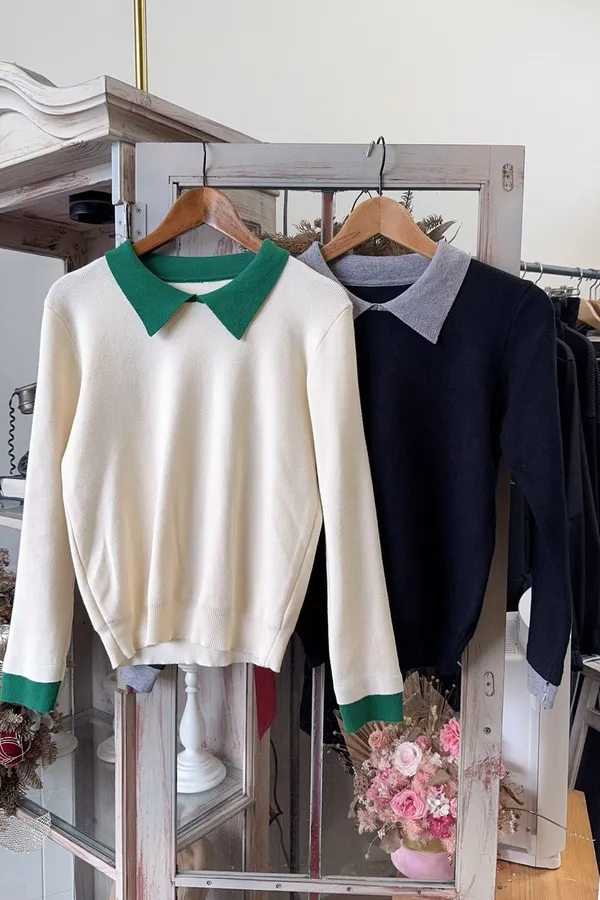 701配色襯領針織上衣