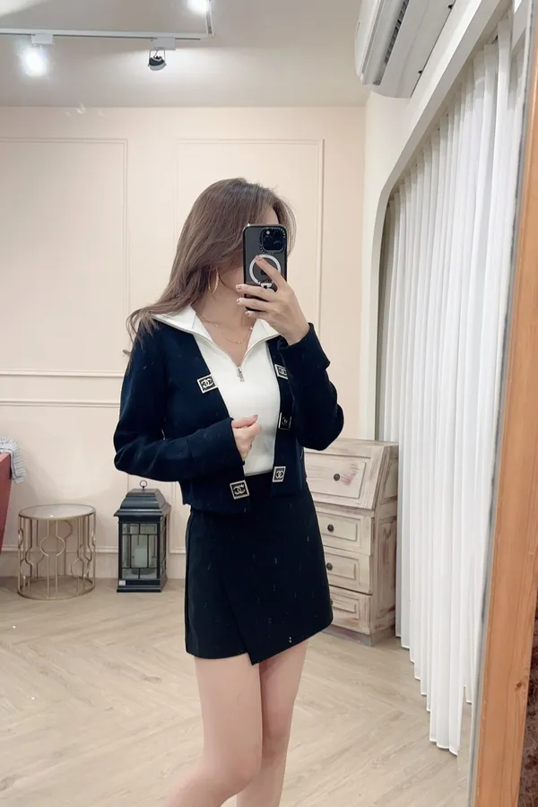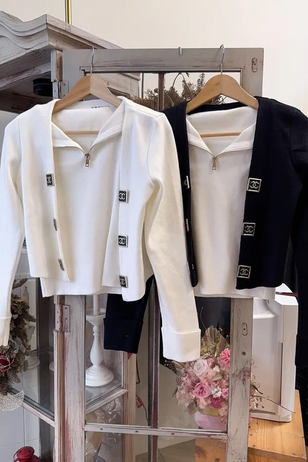 807小香立領背心+精緻釦外套組