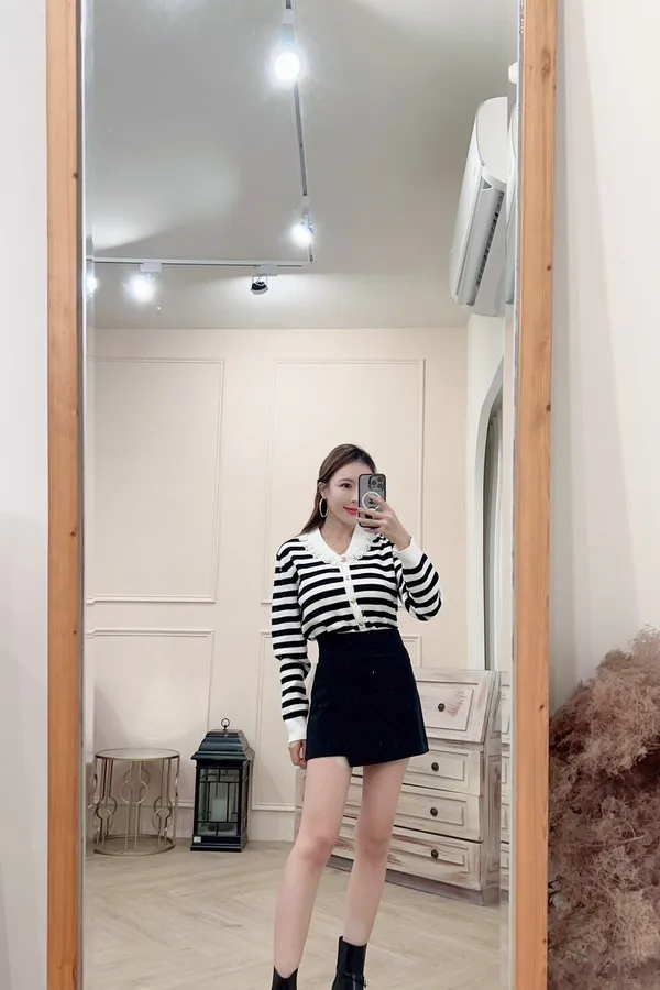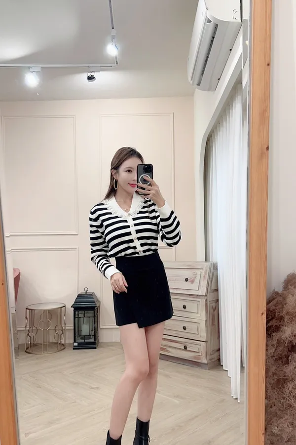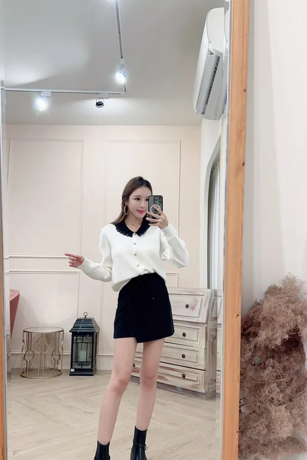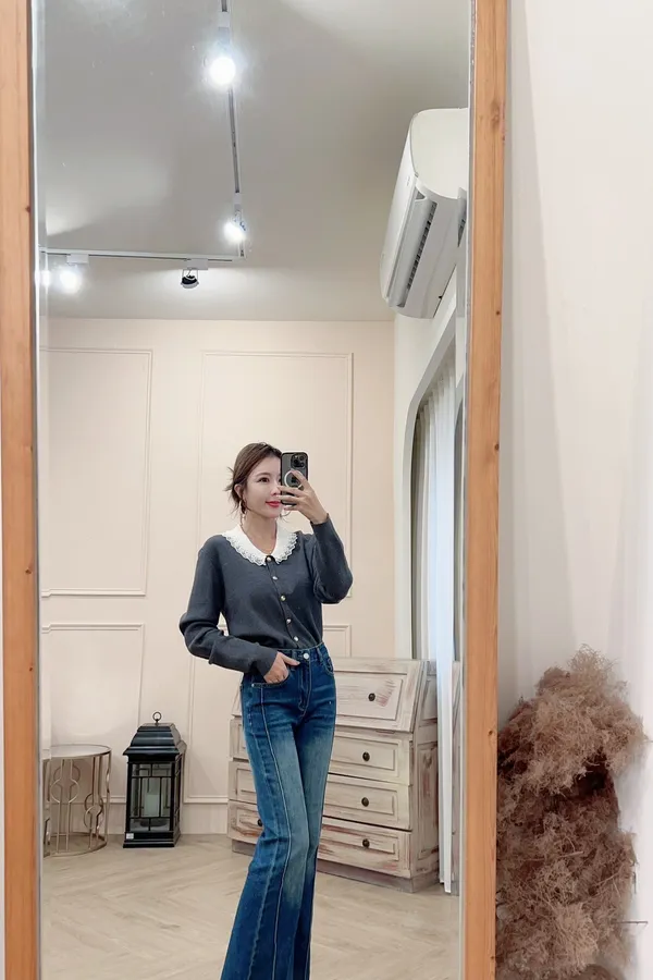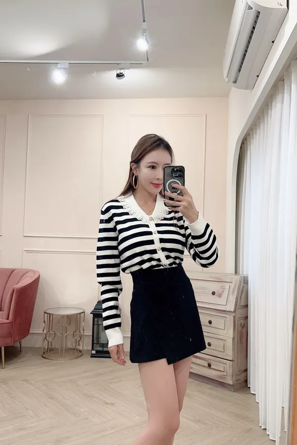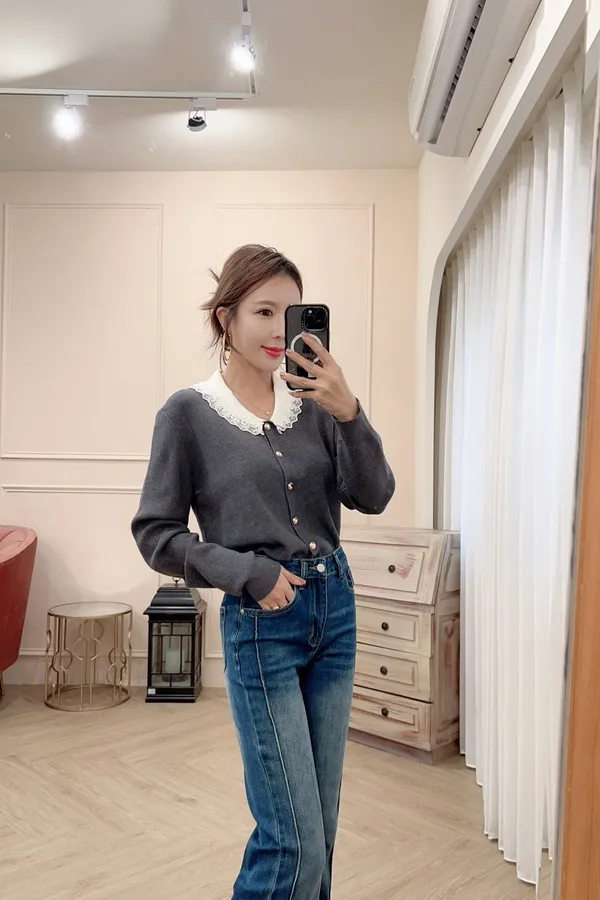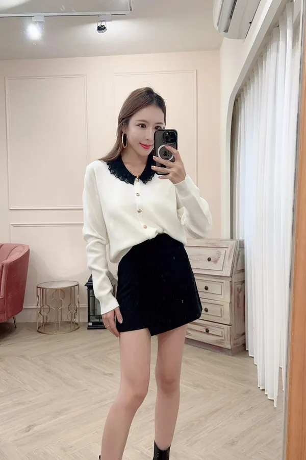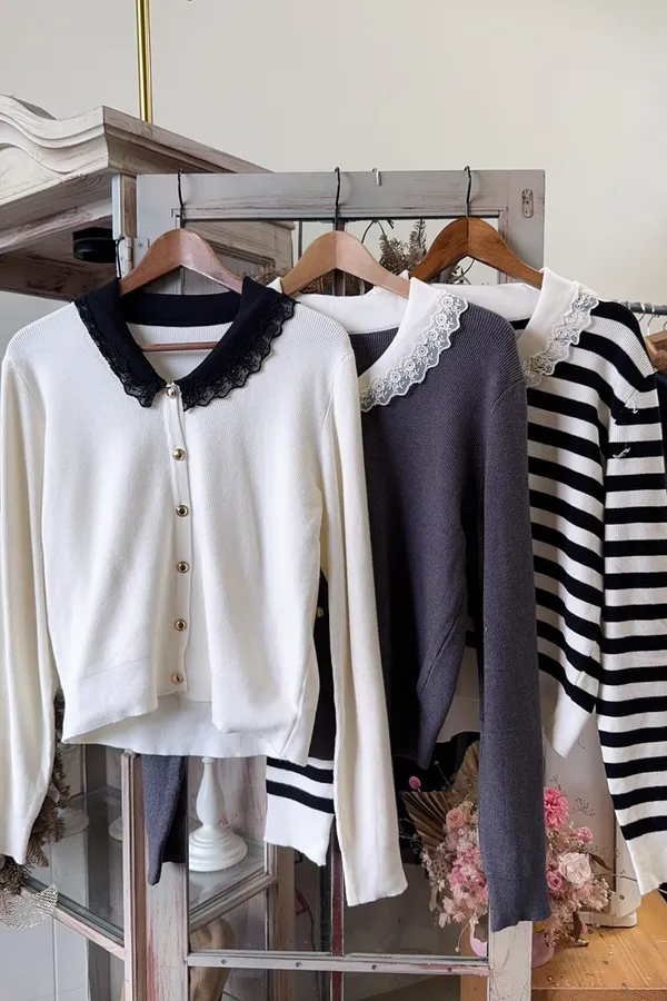 101氣質蕾絲領針織排釦上衣