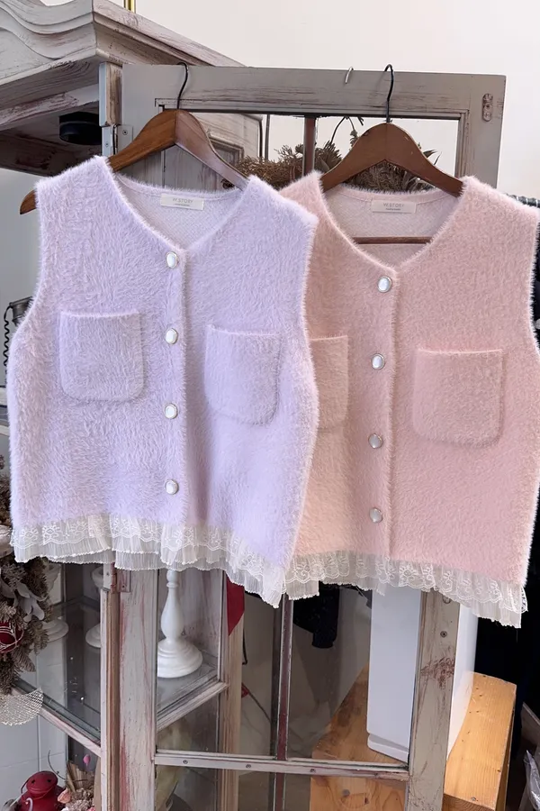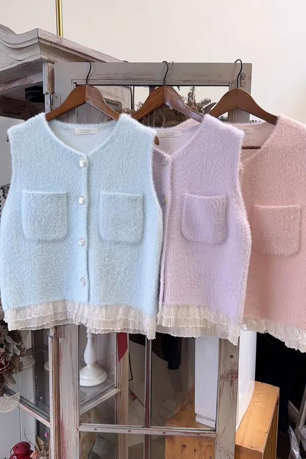 氣質口袋毛呢蕾絲背心
