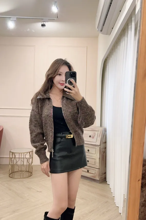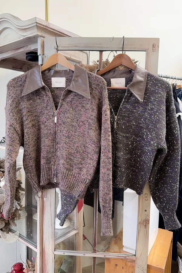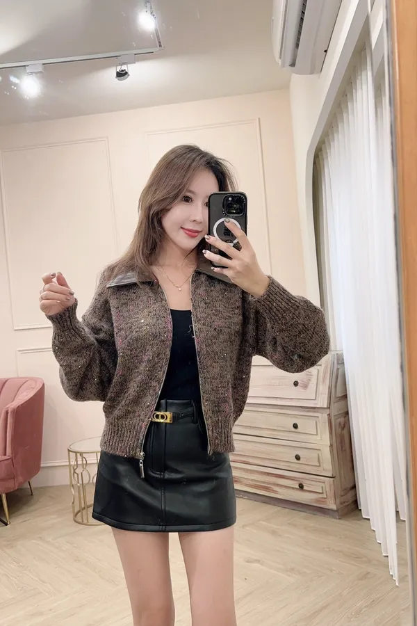 125皮質襯領混色針織外套