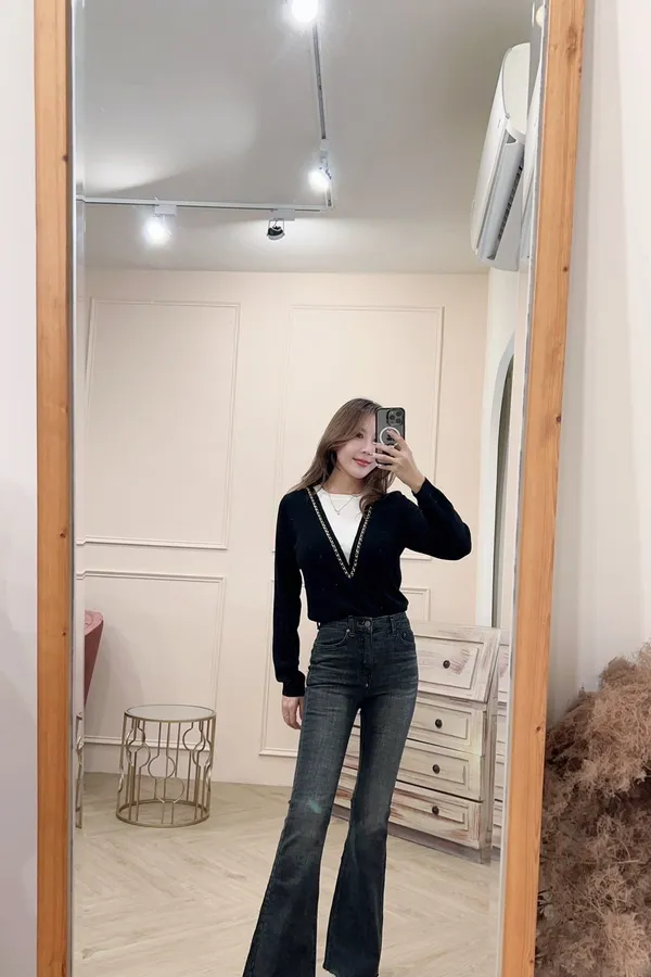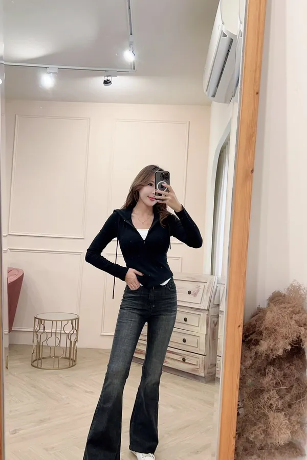 超修身微磨毛彈性牛仔喇叭褲