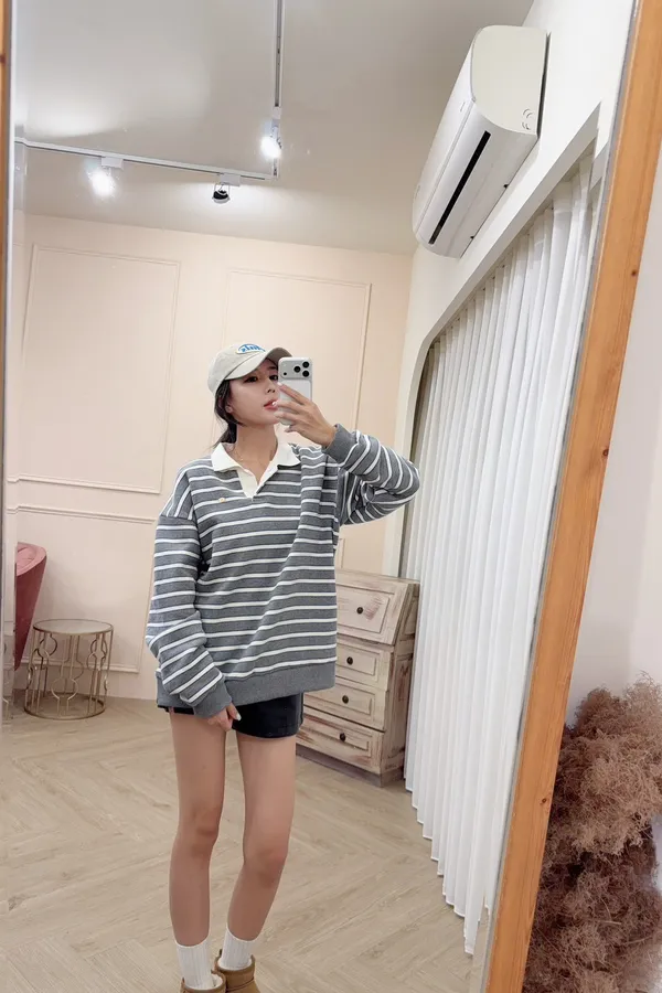 108條紋襯領棉質上衣