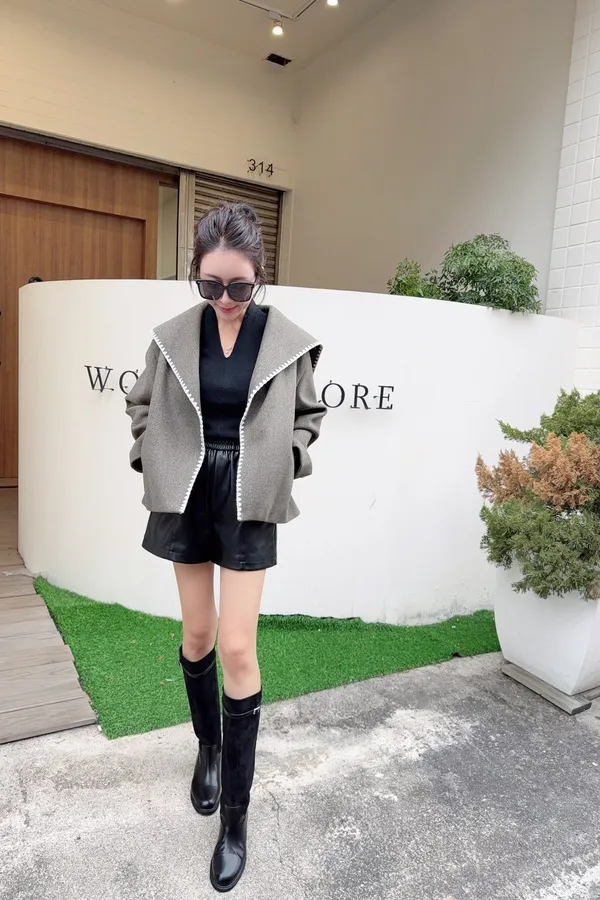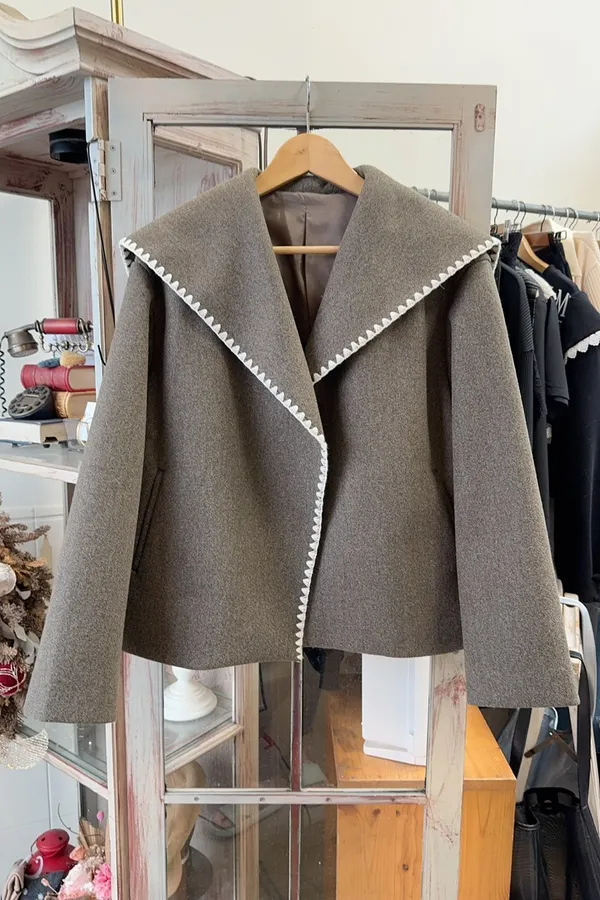 335包邊配色挺版毛呢外套
