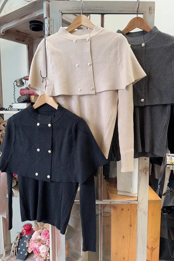 339兩件式披肩羅紋針織上衣