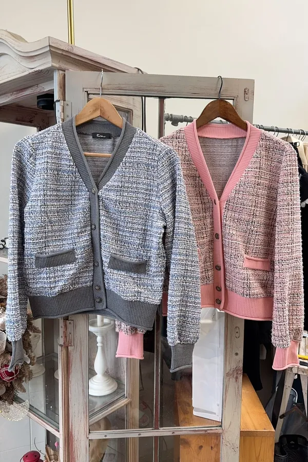 323小香風混色針織開襟外套
