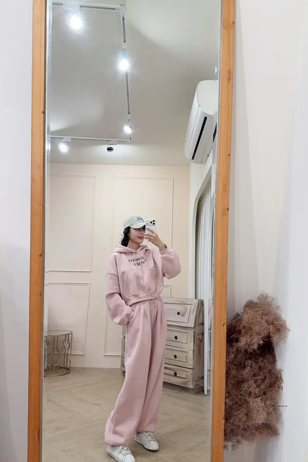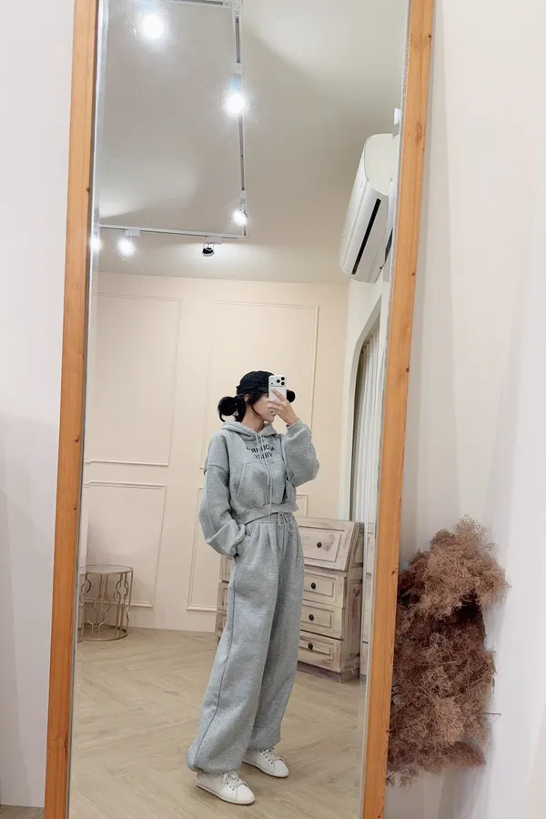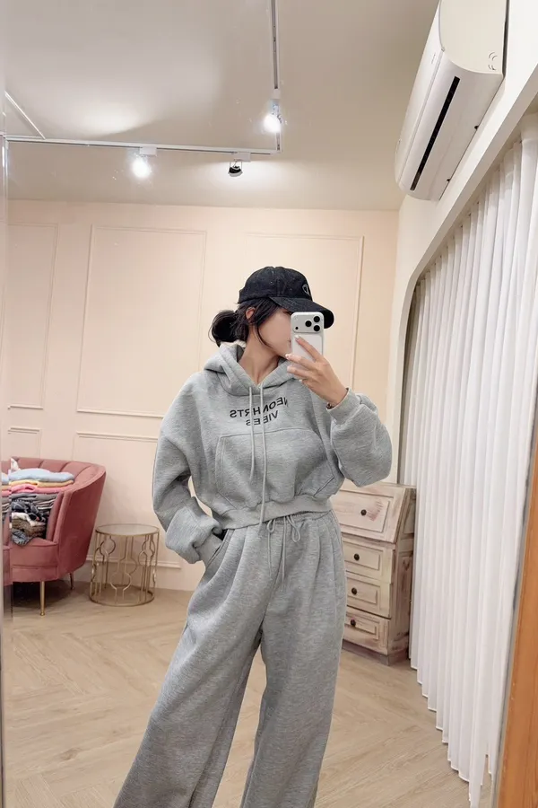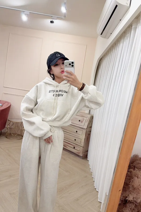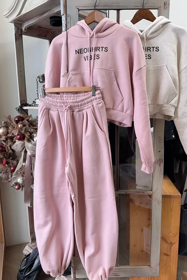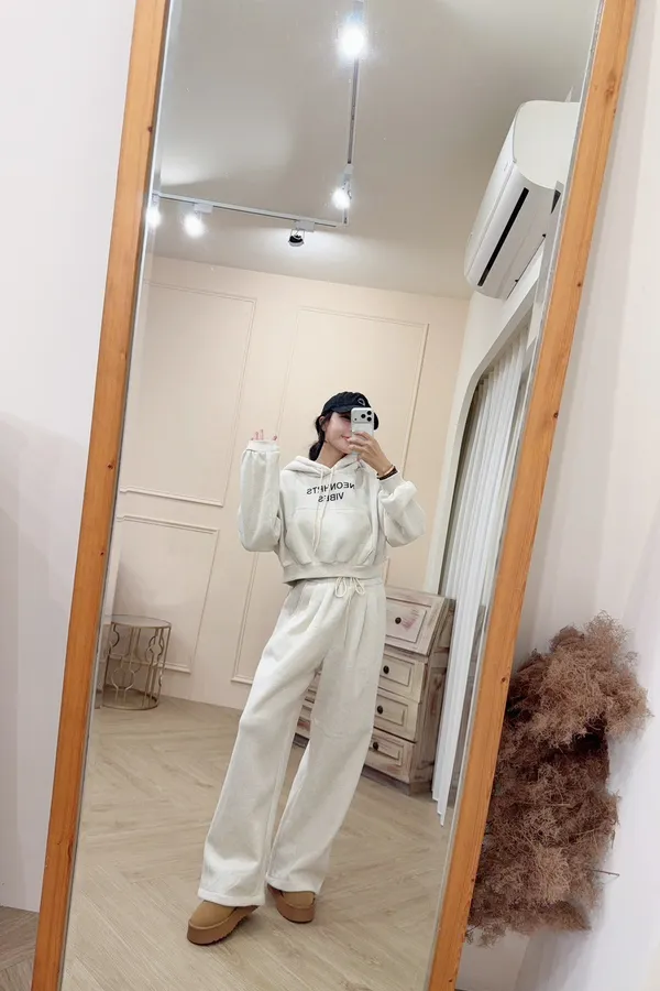 341棉質連帽上衣+休閒褲刷毛套裝(褲下擺可縮口)