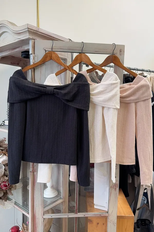334蝴蝶結船領棉質上衣