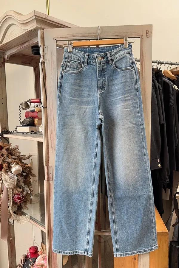 318刷色修身牛仔直筒褲