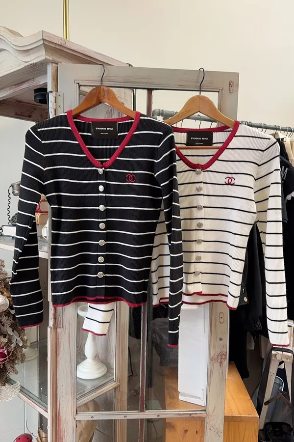 336精緻小香配色邊條紋上衣(可開釦)