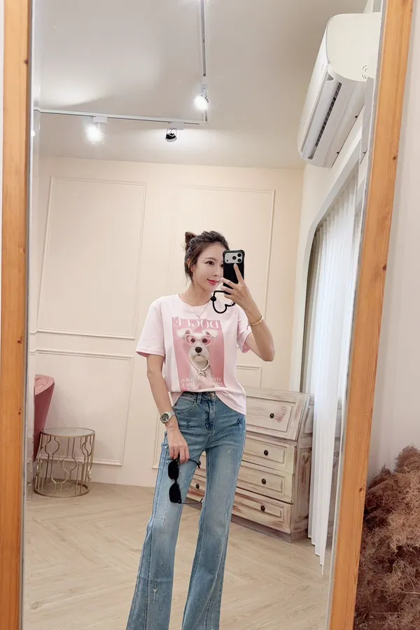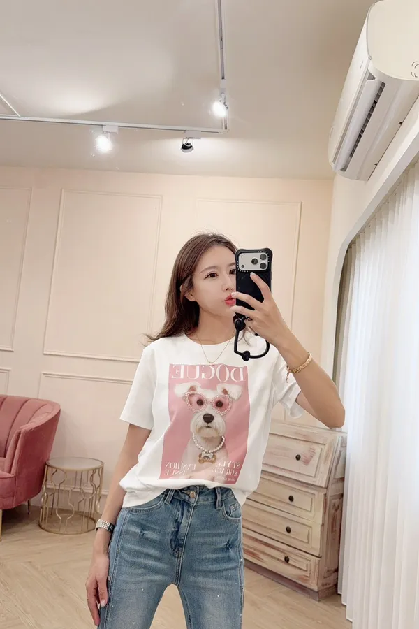 可愛狗狗雜誌風棉T上衣