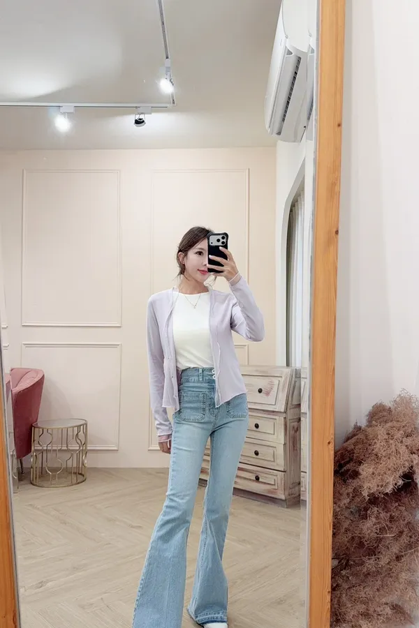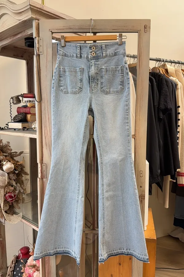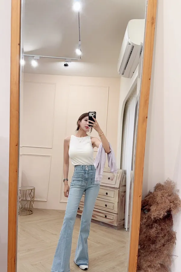 101顯瘦修身口袋喇叭牛仔褲