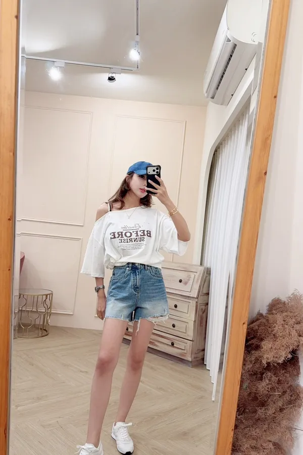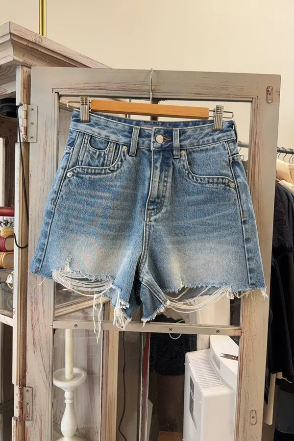 109造型口袋刷破牛仔短褲