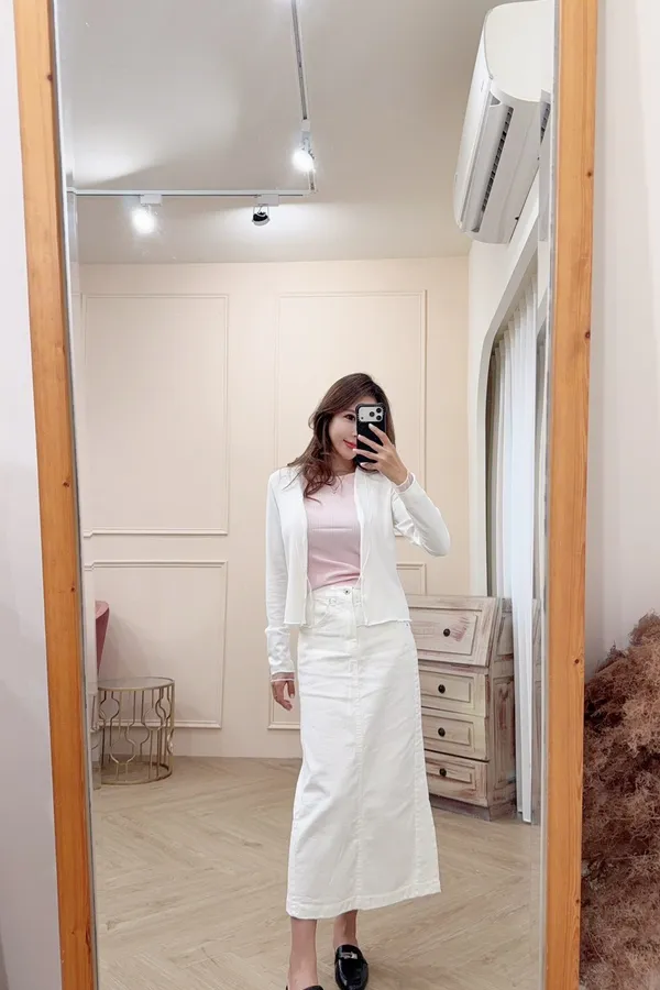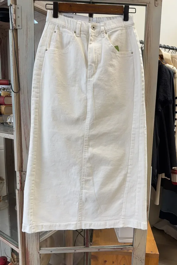 118休閒白色挺版牛仔裙(鬆緊褲頭)